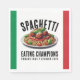Mangiamo! Make that Italian family reunion memorable and a riot with these spaghetti eating champions napkins, which feature the colors of the Italian flag and an image of a delicious heaping plate of my favorite Italian pasta, topped with tomato sauce, meatballs, and basil leaves! Personalize with surname or event name!
