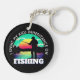 This colourful retro 1980s design shows a man fishing over a scenic background. The words say, "I spent my kids' inheritance on fishing."