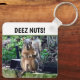 DEEZ NUTS! A hilarious squirrel play on words joke about his nuts. Crude humour for an adult. Make your friends laugh with this pop culture quote keychain gift.