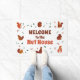 The perfect doormat for squirrel lovers, this original artwork design features eight adorable squirrels, pretty hand drawn leaves, and surrounds customisable text that reads, "Welcome to the Nut House". Spruce up your space with this sweet mat that is sure to make your guests chuckle while showing off your love of squirrels!