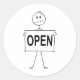 Funny Stick Figure Holding Open Sign Classic Round Sticker