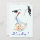 Custom Colours and Fonts - It's a Boy - Cute Stork Carrying Baby Boy Shower Invitations by MIGNED - Create Your Unique Baby Shower Invite - For Personalise and Customise, Please click the "Customise further" - Add Your Text / Name / Information and more - Resize and move elements with Customisation tool.