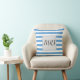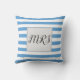 A cool light blue and white striped pattern and a grey rectangle with the word mrs. Click personalise to change the monogram to your liking.