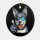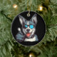 Funny sunglasses dog with thumbs up ceramic tree decoration