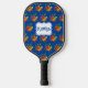 Funny Humourous goofy SuperPickleman flies through the air with his paddle on a dark blue background pickleball paddle design. Sometimes you just need some silliness in your life! Pickleball is supposed to be fun, right? Adults and kids may find this irresistible! Add even more fun by personalising with a name on front and back.