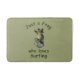 Surfing is an awesome sport that can be enjoyed by people of all ages and this shirt makes surfing look so easy, you'll think anyone can do it. But don't be fooled—you still have to know how to surf in order to look like you know how to surf... Right? Surfing it's not just for human athletes. This funny frog is surfing, and he doesn't look like he's going to stop anytime soon! Get this bath mat today and show off your love for frogs and surfing!