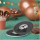 A funny pop culture parody reminiscent of the 80's, this design is inspired by wonderful motion pictures of the past. It features a T-Rex flying on his bicycle, silhouetted against a bright full moon in the background. A group of fir trees below add a sense of wonder to the scene. Personalise the text template with your family name or other desired text. These paper plates make a wonderful choice for snacking in your den, rec room or home theatre room. They also make a perfect hostess gift to take to friends you are visiting who enjoy watching movies. Available in 2 sizes: shown here in 7-inch diameter size, they are also available in 9-inch diameter size.