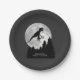 Funny T-Rex Flying on Bicycle and Full Moon Paper Plate