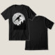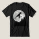 A funny pop culture parody reminiscent of the 80's, this design features a T-Rex flying on his bicycle, silhouetted against a bright full moon in the background. It makes a great choice for your t-shirt collection and a good conversation starter.
