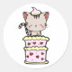 Funny Tabby cat jumping out of a cake Classic Round Sticker