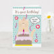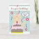 Funny Teal Blue Cat Time For Cake Happy Birthday Card