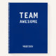 Funny Team Personalised Notes Office Meeting Notebook features the text "Team Awesome" with your personalised name below on a blue background. Personalise by editing the text in the text box provided. Designed for you by ©Evco Studio www.zazzle.com/store/evcostudio