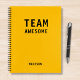Funny Team Personalised Notes Office Meeting Notebook features the text "Team Awesome" with your personalised name below on a yellow background. Personalise by editing the text in the text box provided. Designed for you by ©Evco Studio www.zazzle.com/store/evcostudio