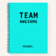 Funny Team Personalised Notes Office Meeting Notebook features the text "Team Awesome" with your personalised name below on a neon blue background. Personalise by editing the text in the text box provided. Designed for you by ©Evco Studio www.zazzle.com/store/evcostudio