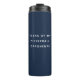 Funny modern thermal tumbler reading TEARS OF MY PICKLEBALL OPPONENTS in a trendy minimalist typography design on navy blue.