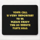 A humourous message is written in bold yellow text against a black background. It reads, "Your call is very important to us. Please enjoy this 20 minute flute solo."