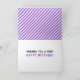 This card is great fun and good quality. I loved the humour inside and on the back. There is the opportunity to change the orientation of this card from landscape to portrait, which I did. It is relatively straightforward to amend the typeface to fit the new orientation. It was well packaged with no plastic. The printing on this card is excellent.