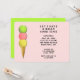 Tennis party invites featuring tennis balls stacked as ice cream scoops and funny line on pink background.