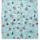 Fun terrazzo shower curtain with a geometric seamless pattern with weird eyes on some of the abstract marble stones in coral and blue colours.