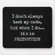 For all you programmers out there. A funny mouse pad that you can relate to "I don't always test my code, but when I do... it's in PRODUCTION". Great for a bit of office humour or as a novelty gift to a nerdy co-worker.