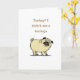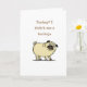 Funny Pug Thanksgiving Card. Fat pug saying "Turkey? I didn't see a turkey". Inside: Have a delicious Thanksgiving