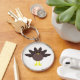 This cute keychain features a funny cartoon of a turkey with big black eyes, a small yellow beak and tail feathers sticking up. The feet are facing in opposite directions making the turkey look clumsy. This amusing design is ideal for Thanksgiving.