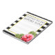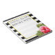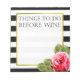 Make your mundane tasks a bit more fun with this funny notepad for women which says "Things to do before wine". Use it for jotting down your epic idea's while planning your wedding or birthday, or use it to jot down the shopping items you forgot the first time, or use it as a to do list. The possibilities are endless. The design features a gold frame and a pink watercolor rose and leaves on a black and white striped background.