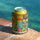 Funny Tiki Faces with tropical sunset and name Can Cooler