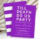 Host a couple's shower for the bride and groom with this simple, bold and fun "TILL DEATH DO US PARTY" invitation. The text template allows you to personalise all of the text with your desired event details. This invitation is available in a variety of colours - shown here in white text with a vibrant purple background and matching rugby stripes pattern on the back. Lots of matching party products are available to coordinate the theme.
