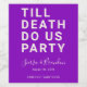Set the tone for your wedding reception, engagement party, or wedding anniversary with this funny wine label. This design features simple bold text "TILL DEATH DO US PARTY". The text template allows you to personalise this design with the bride and groom's names and wedding date. You can also change the text to other wording if you desire. Available in a variety of colours - shown here in white text with a vibrant purple background.