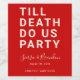 Set the tone for your wedding reception, engagement party, or wedding anniversary with this funny wine label. This design features simple bold text "TILL DEATH DO US PARTY". The text template allows you to personalise this design with the bride and groom's names and wedding date. You can also change the text to other wording if you desire. Available in a variety of colours - shown here in white text with a red background.