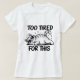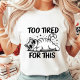 Speak your truth without saying a word! This hilarious and relatable women's t-shirt features a chill, chunky tabby cat lounging in oversized sunglasses with the bold text "TOO TIRED FOR THIS." With its clean black and white aesthetic and starry accents, this "sassy cat" design is the perfect uniform for Mondays, long weekends, or those days when caffeine just isn't enough. Made for cat lovers with a sense of humor, this soft graphic tee adds a touch of wit to your casual wardrobe. A great gift for the "nap queen" in your life!