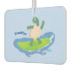 This funny tortoise is surfing the waves pop a bright green surfboard. Reptile fun in cartoon style!