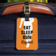 Funny travel luggage tag for marathon runner. Double sided print with name and address. Running inspired design with custom background colour. Personalised baggage labels for kids and adults. Cool Birthday gift ideas for sporty men, women and children. Great for runners, personal trainer, athletic trainer, sports coach and others.