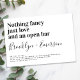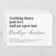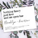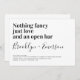 Invite friends and family to join you for your wedding celebrations with this funny wedding invitation. The text reads "Nothing fancy just love and an open bar"