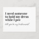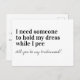 Let your bestie know you want her by your side with this funny "I need someone to hold my dress while I pee" bridesmaid proposal card.