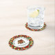 Paper coasters with a triangle red, green, and gold ugly Christmas sweater design to coordinate with the party invites for an ugly sweater themed holiday party. This has a funny message and an editable name and date that you can personalise.