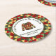 Funny Ugly Christmas Sweater Red Green Gold Round Paper Coaster
