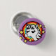 Cartoon unicorn with rainbow round pin back button background colour can be customised.