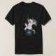I give wanted to give this a 4 instead of a 5 because these Basic DARK T0shirts run unexpectedly SLIM or Narrow. Which is great if you do not have a potbelly, but I have a paunch. It isn't the shirt's fault that I've got a beer belly. The design and shirt itself is a quality cotton shirt. The color is more of a deep purple, but still a very pretty color. The Basic DARK T-shirts run a bit SLIMMER than the Basic Ts. The neck is a fraction narrower (or seems to be narrower) also. I'm a paunchy middle-aged woman and my neck is 12 inches (31cm) thick and the neckline fell about the same as in the photo of the man, and I had the desire to tug it a bit. So if you're a thick necked man or like loose shirts, be aware these are slimmer shirts. Once I get rid of my lockdown paunch it'll look great. The shirt washed well in cold water with no apparent bleeding. We don't have a dryer, so it hung dry. Did not shrink. Love the colors and the design. The design looks smaller on my shirt than it does on the model on-line. But still, it looks good on the shirt. The printing looks as it does on the model, just the size seems fractionally smaller. Washed garment in cold water, hung dry and design appeared unaffected.
