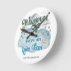 Ah the beauty of being on vacation and being at the lake means that you are on "lake time". Funny lake time clock to "not watch" the time while enjoying your life at your family vacation cabin home or cottage. Perfect for vacation rentals too. Watercolor lake, boat, mountains and trees form a beautiful modern scene. Have some fun and enjoy being at the lake. Monogrammed with name.
