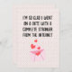 A unique Valentine's Day card for the special someone you met online. "I'm So Glad I Went On A Date With A Complete Stranger From The Internet" says it all with a touch of humour and a whole lot of love.