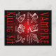 The image is a stylised illustration of a vampire killing kit. The words "VAMPIRE" and "KILLING KIT" are written in large, red, gothic-style font at the top and bottom, respectively. In between, there are six white outlined drawings of items traditionally used to kill vampires: a stake and mallet, a bible, a pistol with silver bullets, a bottle of holy water, garlic, and a cross. Perfect gift for Goths and vampire lovers.