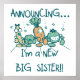 Funny Veggies New Big Sister T-shirts, bodysuits, key chains, buttons, bags, mugs, stickers, cards, and other big sister items featuring several silly veggies with eyes and text that reads "Anouncing...I'm a NEW BIG SISTER!!".
