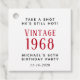 Funny party favour tags for his 60th birthday celebration. Personalise "Take a Shot He's Still Hot" and "Vintage" if desired and add his birth year, name and the birthday party date.
