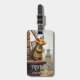 Luggage tag featuring a funny design of a mouse overlooking a vintage landscape scene with mills. Great for the experienced world traveler.