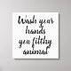 Give your guests a laugh when you go to the bathroom in your home with the Funny | Bathroom Wash Your Hands You Filthy Animal wall art