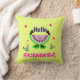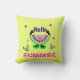 Bright throw pillow with funny watermelons on yellow background and text HELLO SUMMER
