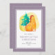 Funny purple meowy Christmas card featuring a watercolor illustration of a fat cat wearing a Santa Claus hat. Easily personalise this pastel watercolor holiday card with your family name.