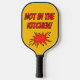 Join the Pickleball Chicken Club with this fun paddle featuring a squawking chicken and the comic-style saying "Not in the kitchen!" on the back.
